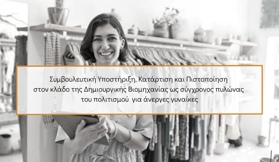 ΝΕΟ ΠΡΟΓΡΑΜΜΑ «Συμβουλευτική Υποστήριξη, Κατάρτιση και Πιστοποίηση στον κλάδο της Δημιουργικής Βιομηχανίας ως σύγχρονος πυλώνας του πολιτισμού για άνεργες γυναίκες»